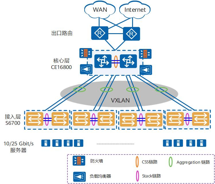 VXLAN 支持 VXLAN 功能,支持 VXLAN 二层网关、三层网关,支持 BGP EVPN,实现自动建立隧道
