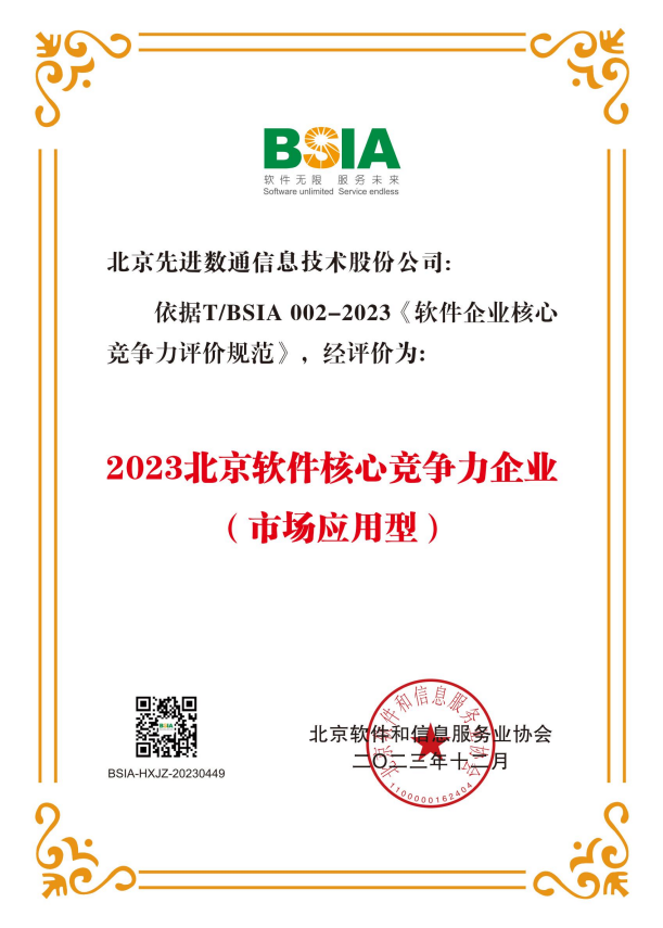 顺发配资荣获“2023北京软件核心竞争力企业”荣誉